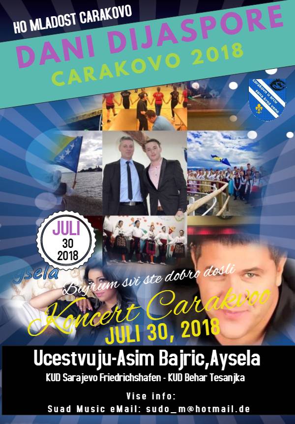 U okviru sada već tradicionalnih “Dana dijaspore Čarakova”, u organizaciji Humanitarne organizacije Mladost, u ovoj mjesnoj zajednici bit će organiziran koncert i druženje 30.jula ove godine u večernjim satima.