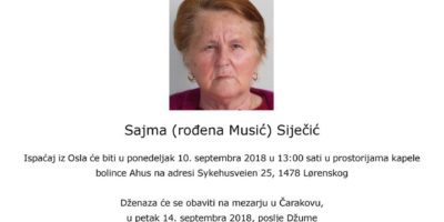 NA AHIRET PRESELILA SAJMA SIJEČIĆ IZ ČARAKOVA
