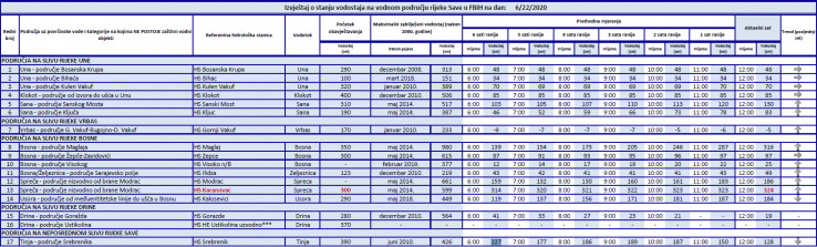 Tabela prikazuje i podatke iz 2014. godine, kada su BiH pogodile stravične poplave, a te brojke prikazuju najveći vodostaj zabilježen upravo te godine.