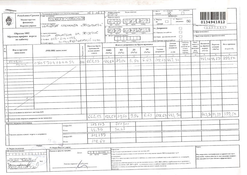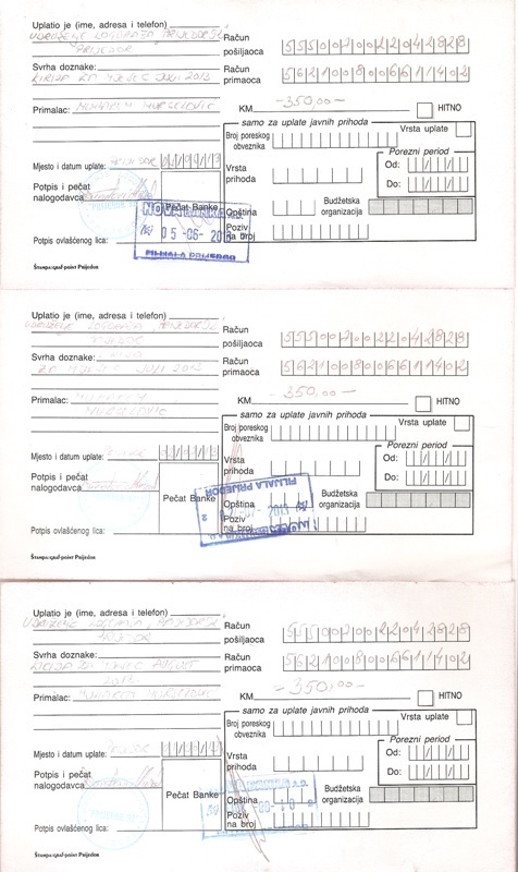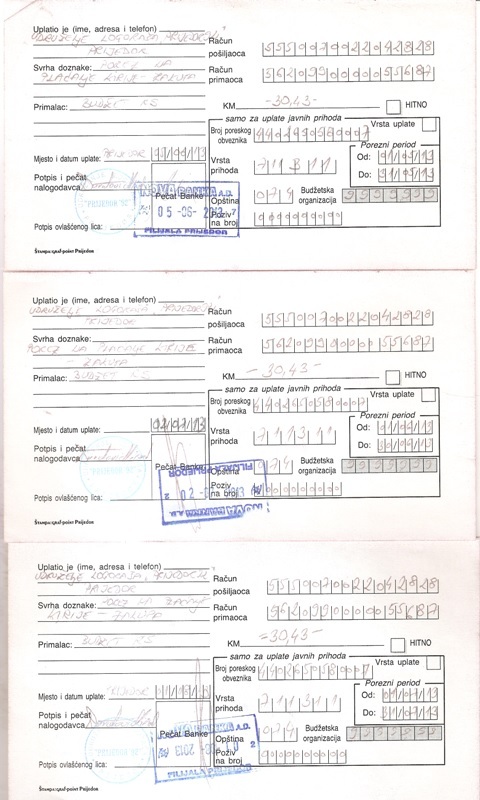 7.Uplatnice za porez na kiriju za juni, juli i avgust 2013.godine