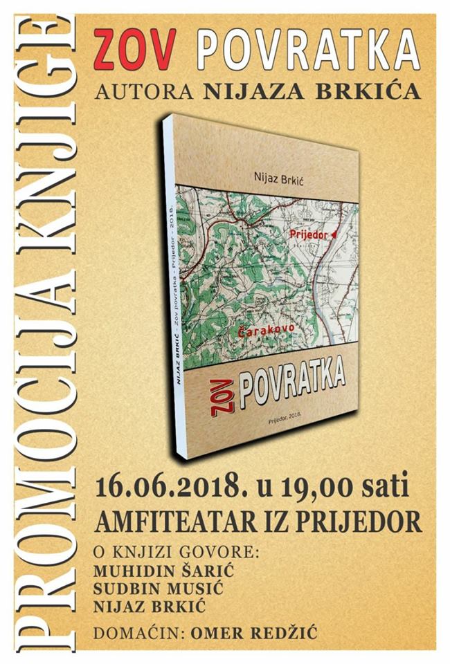 U subotu u 19:00 h u amfiteatru Islamske zajednice (u sklopu Čaršijske džamije) u Prijedoru bit će održana  promocija prve knjige Nijaza Brkića “Zov povratka”.