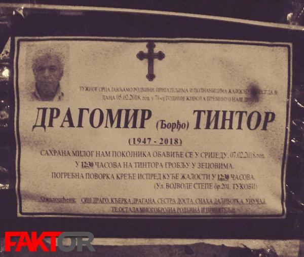 Čitatelji nam javljaju kako se na porodičnoj kući Tintora nalazi osmrtnica sa njegovim imenom i vremenom sahrane, kao i na raznim lokacijama na području Prijedora.
